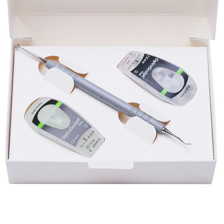 Otimize sua experiência com o Kit Espátula OptraSculpt para resina. Desenvolvido para precisão e facilidade de uso, este conjunto oferece modelagem eficiente e resultados estéticos em procedimentos com resina.